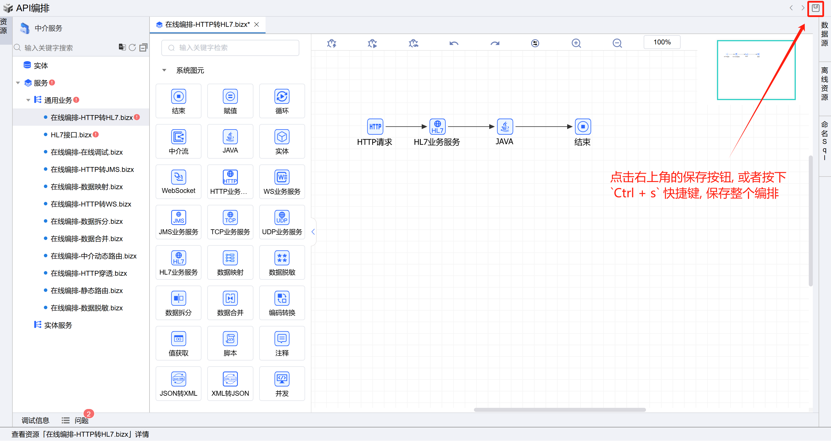 1.1 或者点击中介服务,点击API编排按钮进入在线编排页面。如下图: