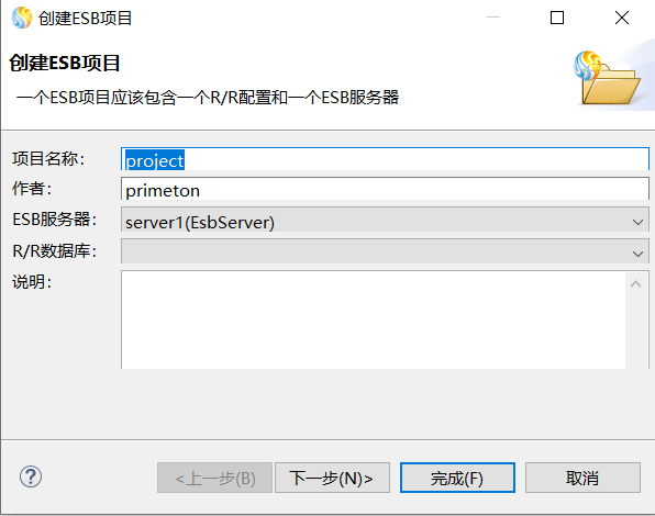 • R/R数据库:用于存储Module的R/R。该R/R的配置必须与选择的ESB Server的R/R配置一致。缺省配置下,ESB Server和R/R均连接Studio安装时配置的数据库。