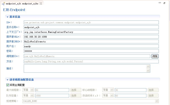 - 文件名:用于存储EJB Endpoint配置的文件名。需要保证在ESB工程中唯一。