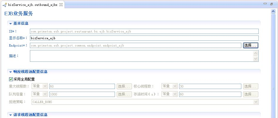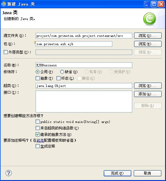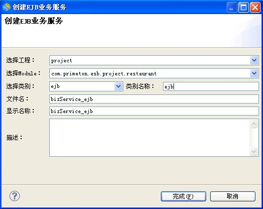 2. 在"创建EJB业务服务"向导中,输入相应的信息,点击"完成"按钮,完成EJB业务服务的创建,如下图所示。