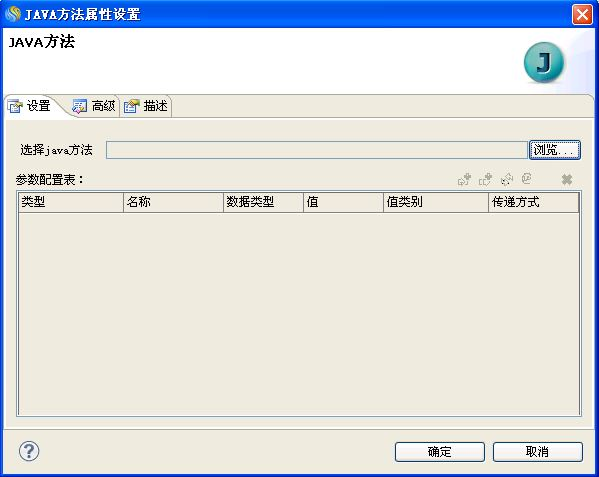 5.双击编辑区中的"Java方法"图元,弹出"JAVA方法属性设置"窗口,如下图所示。