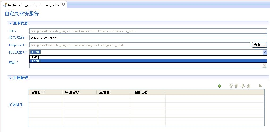 上图中的"协议类型"是可以选择的,由于我们创建的时tuxedo服务,所以这里选择TUXEDO。