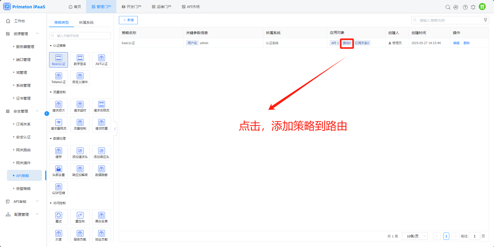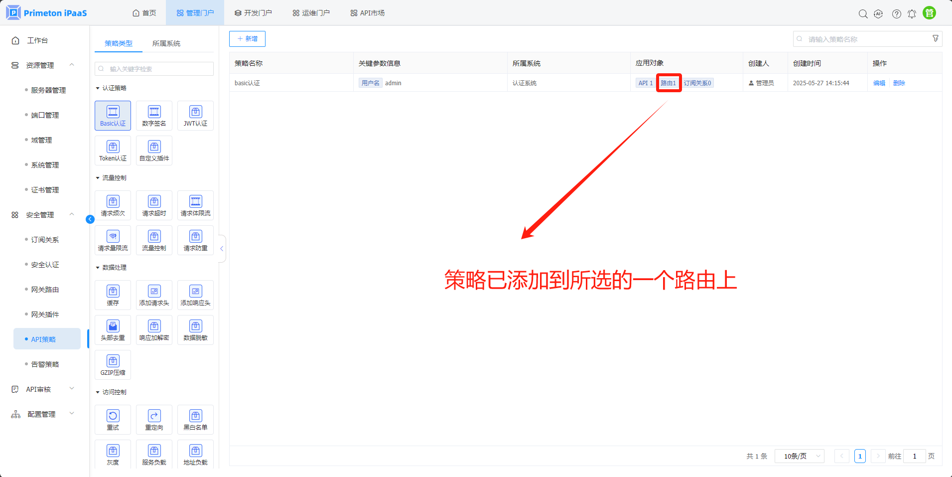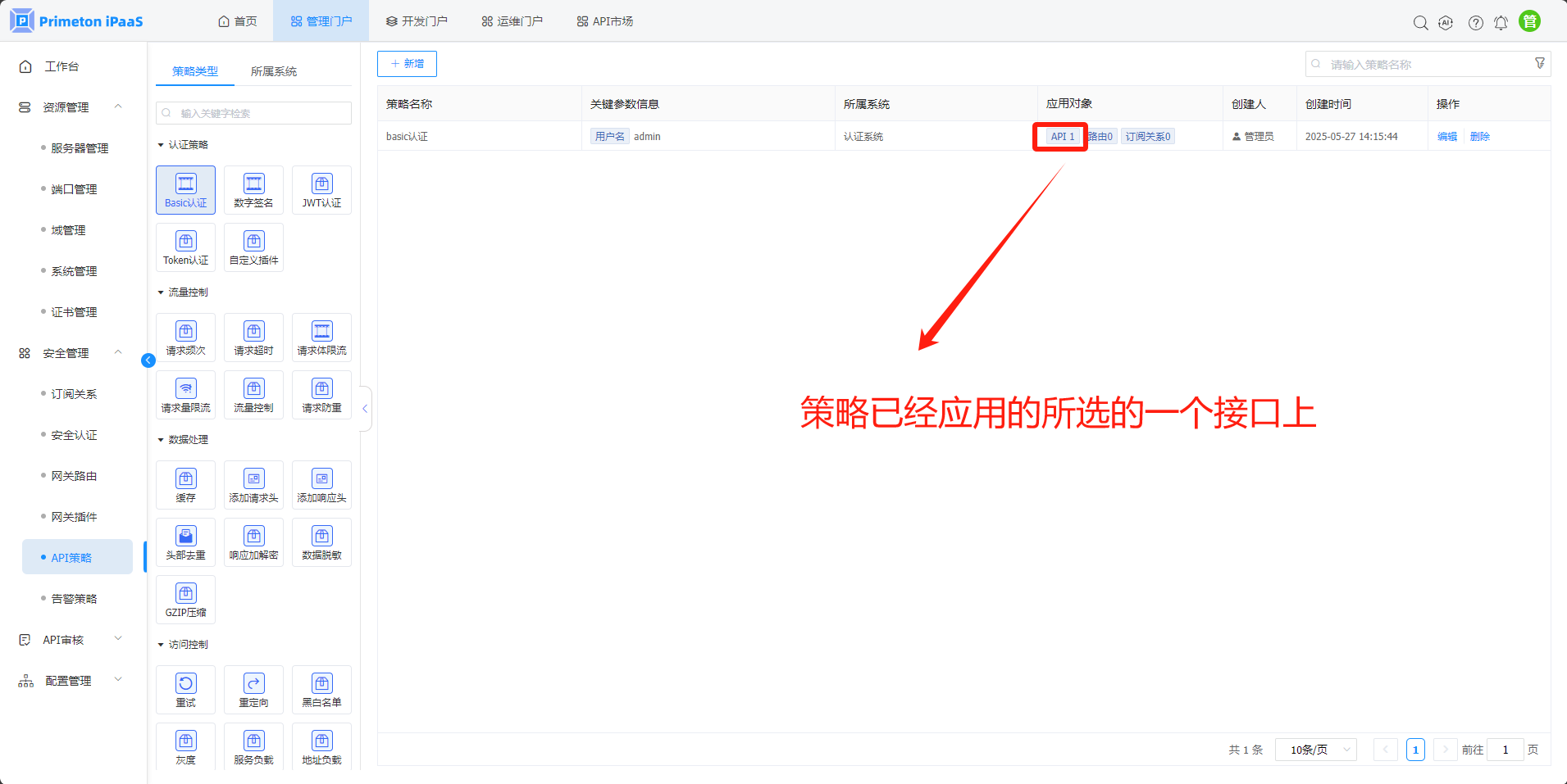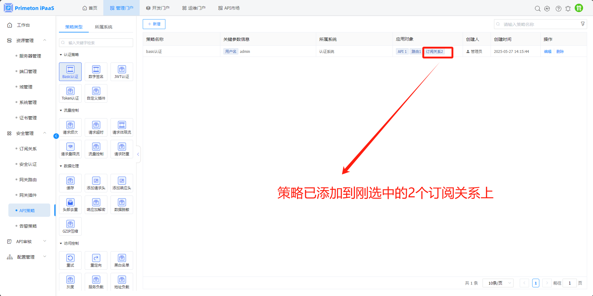 API策略页面内置了25种API策略,可实现路由,API接口,订阅关系粒度的API拦截管控。