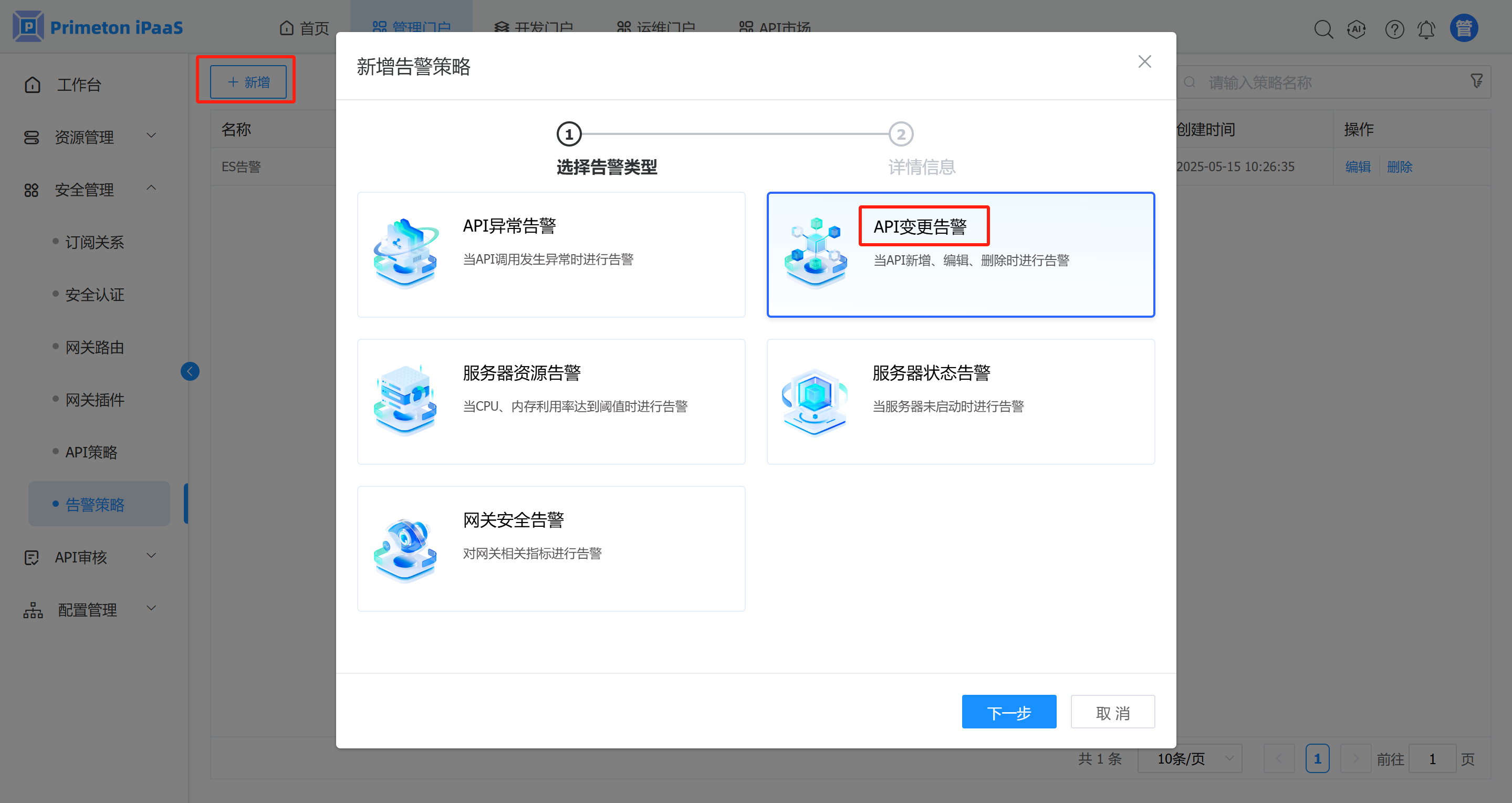 - API变更告警:当API新增、编辑、删除时进行告警。