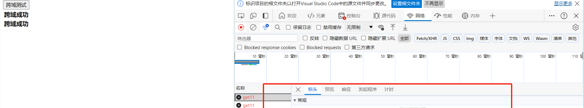 3. 此处通过前端发送一个/api开头的GET请求,并携带请求头Token,具体效果如下:
