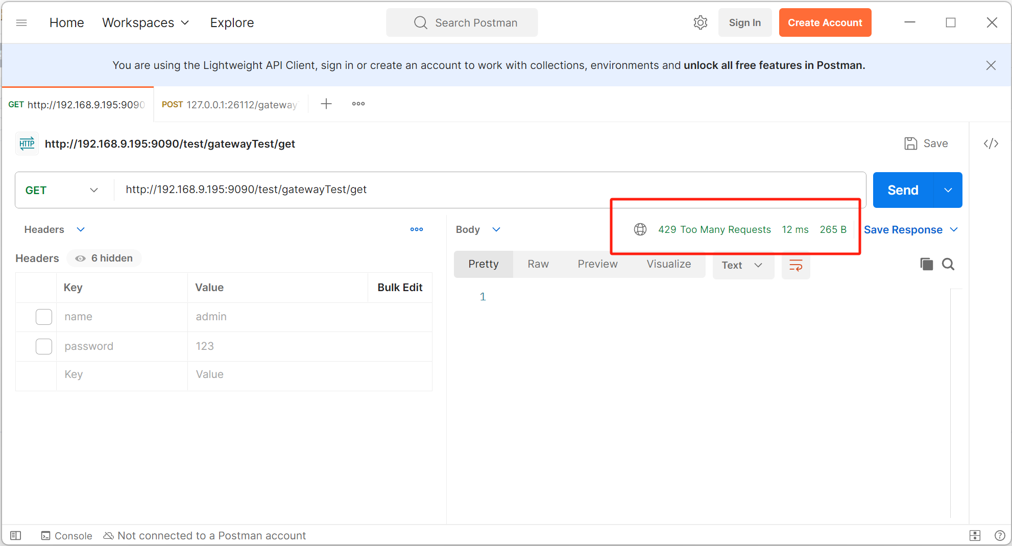限流生效时效果如下: