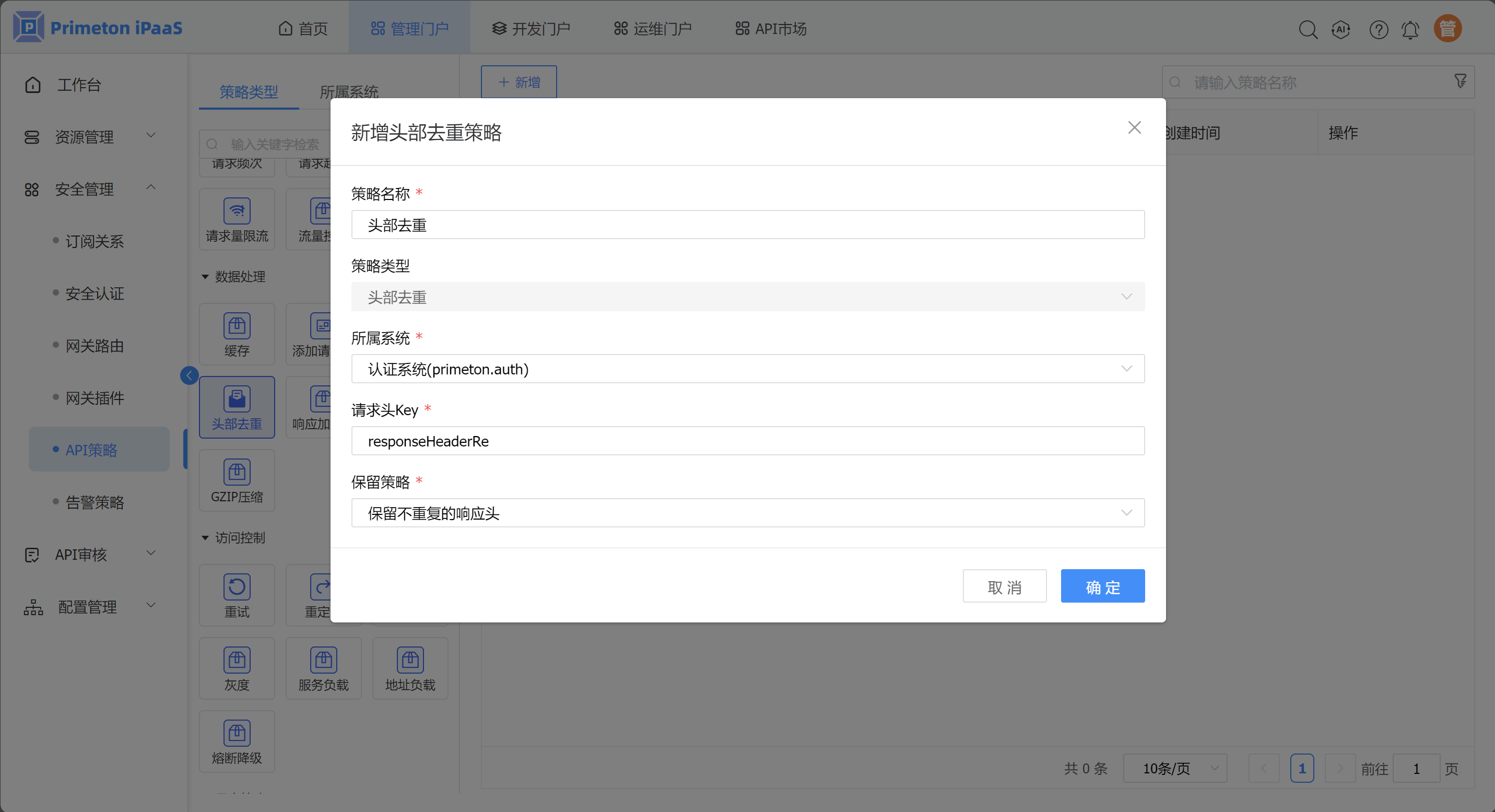 头部去重策略是控制响应报文头,对value值重复的响应头进行去重。