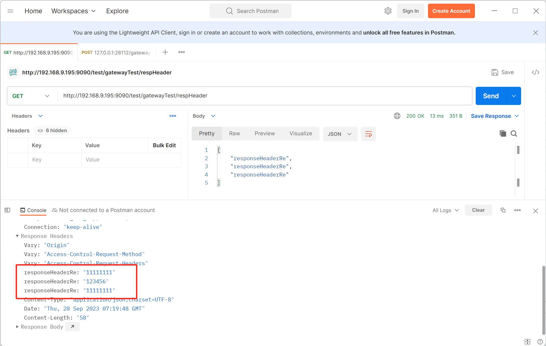 配置了策略,此时返回的响应头中只留下不重复数据: