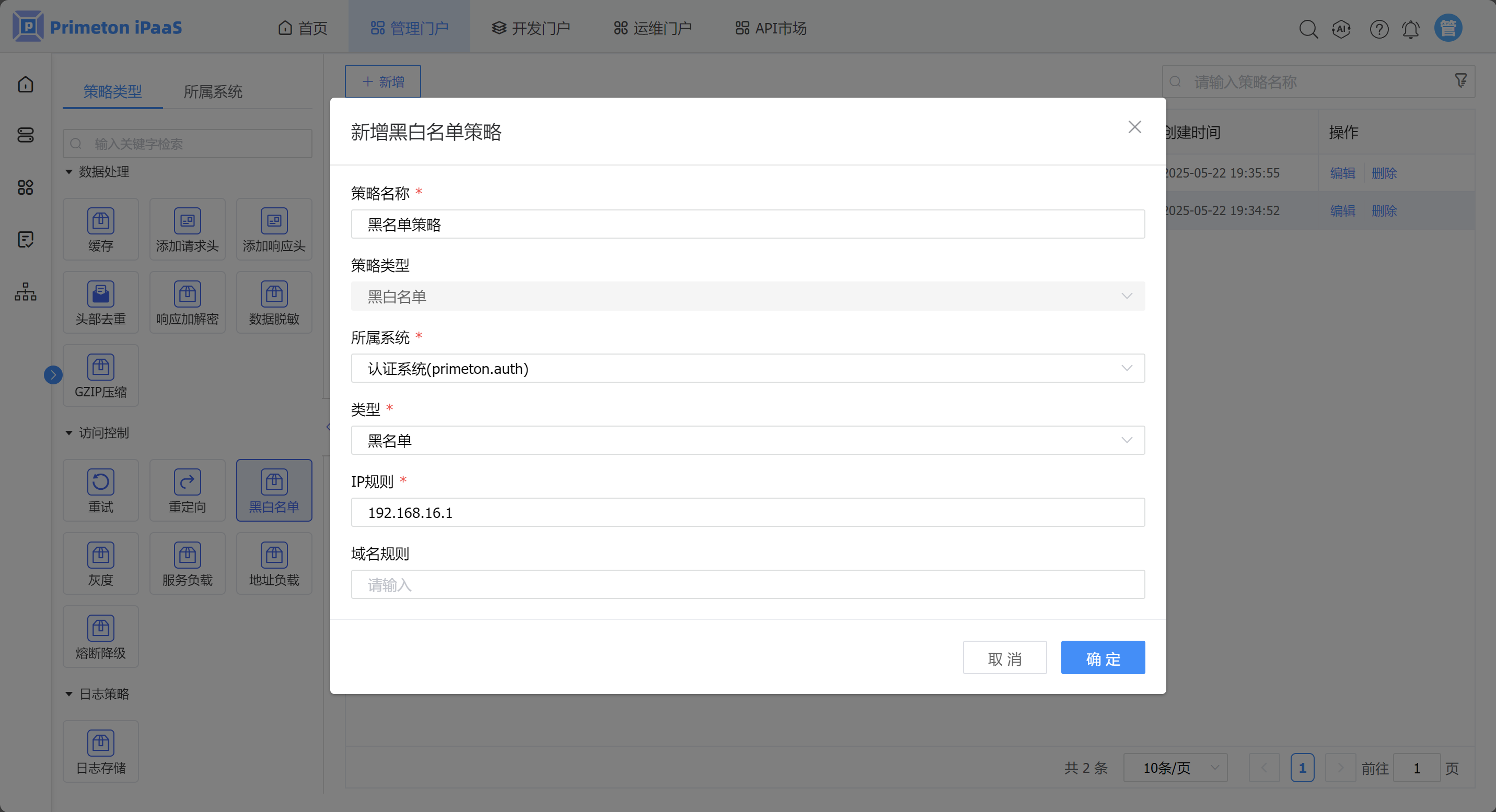 黑白名单策略是访问控制的基础机制,通过定义明确的规则来控制消费方请求的准入权限。