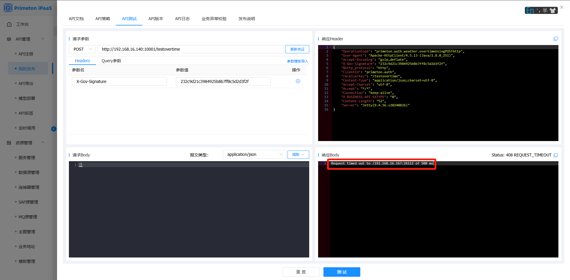 添加策略到API接口,在"API测试"中,查看调用结果: