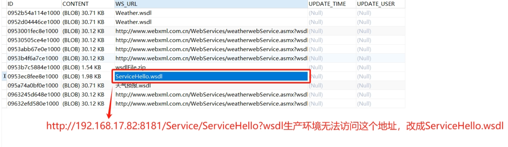如果生产环境无法连接到该wsdl地址,将该条wsdl记录的WS_URL字段改成以.wsdl结尾的文件名,然后保存记录。