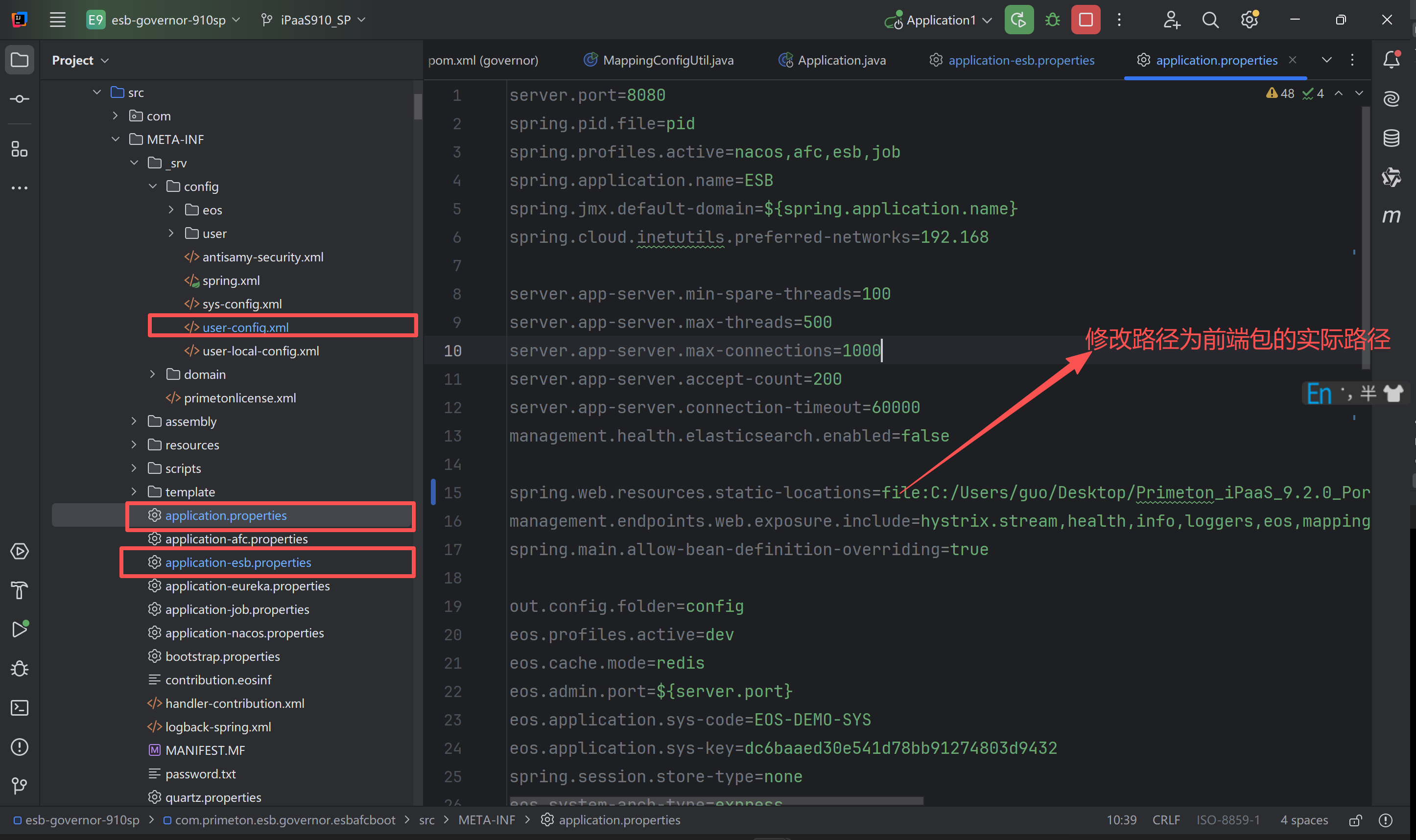 # 2.3、修改application-esb.properties