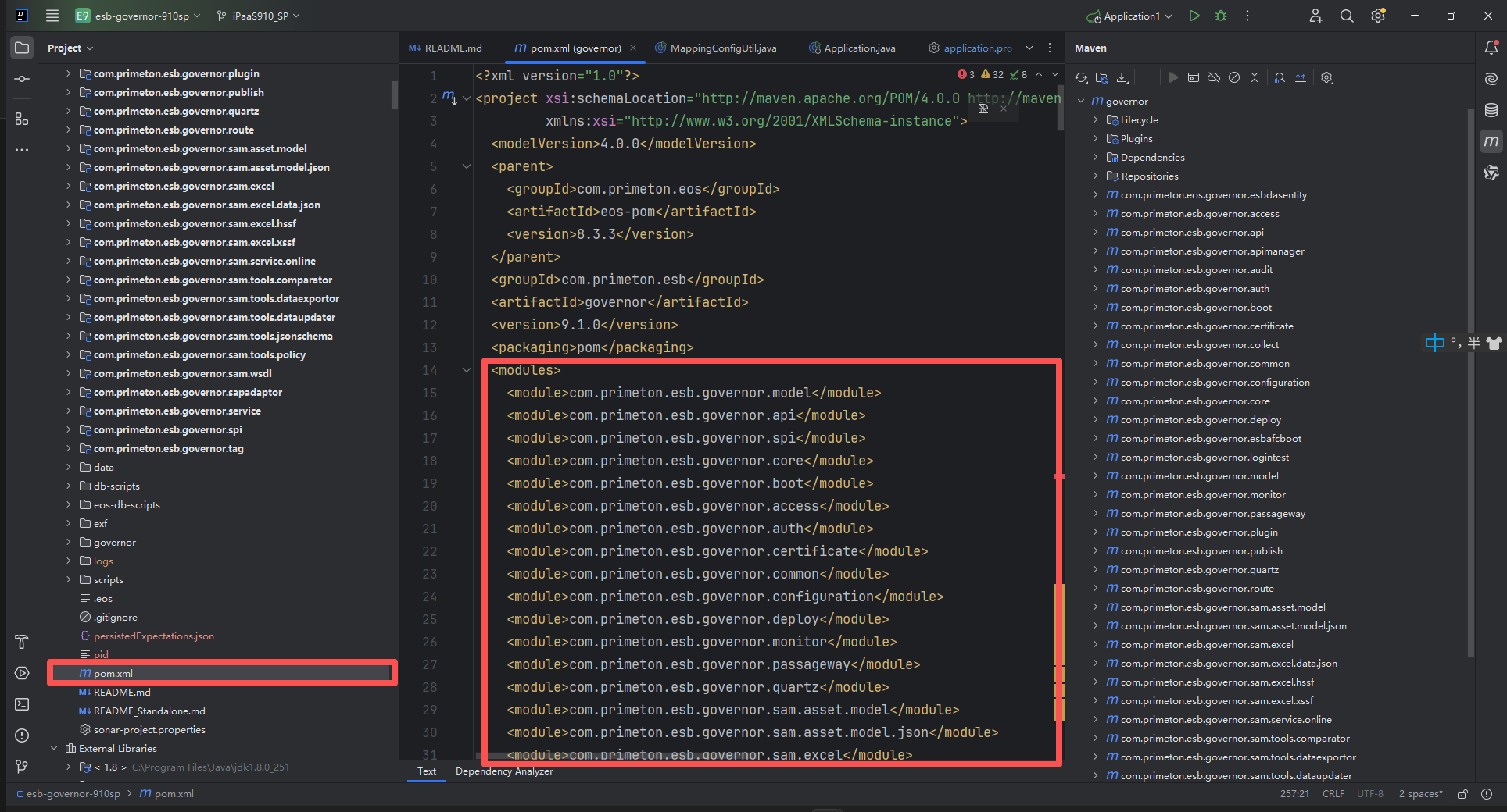 在com.primeton.esb.governor.esbafcboot 模块下修改配置文件。