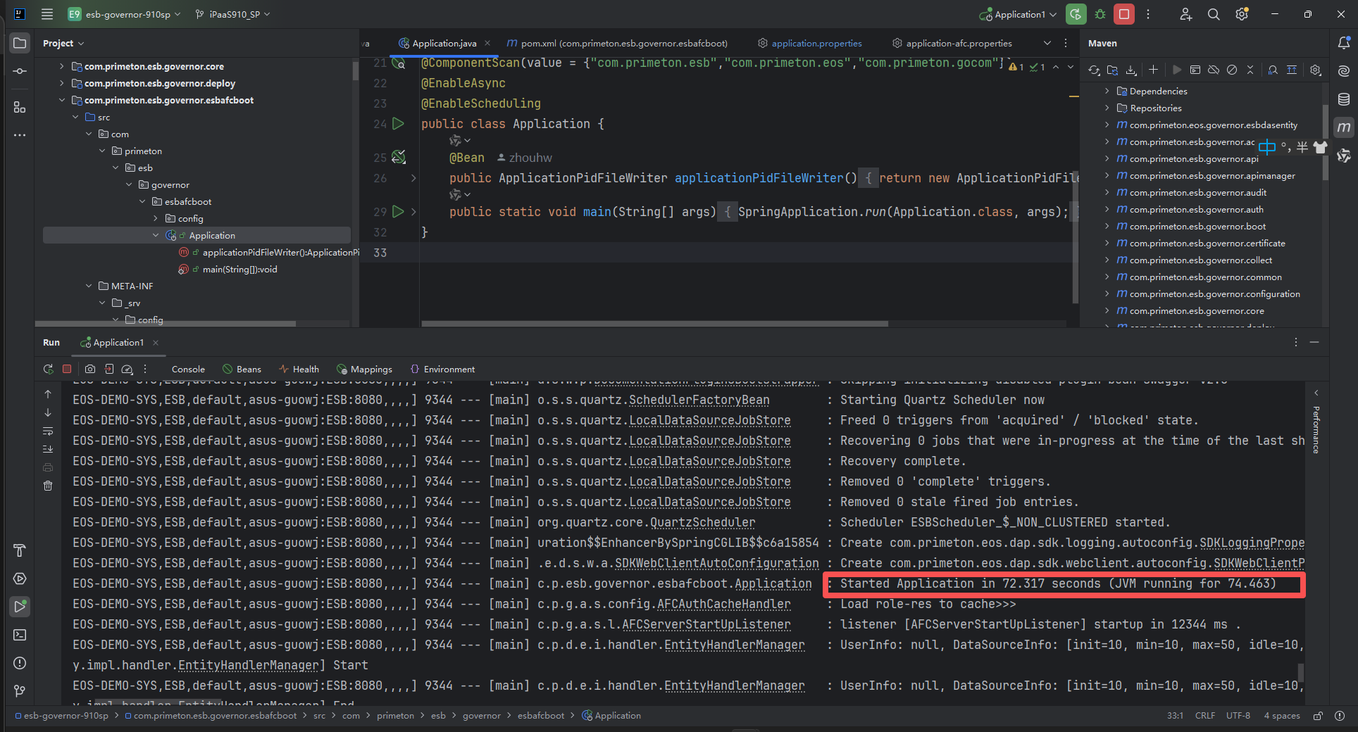 1.运行com.primeton.esb.governor.esbafcboot 模块下的Application,启动iPaaS Portal。