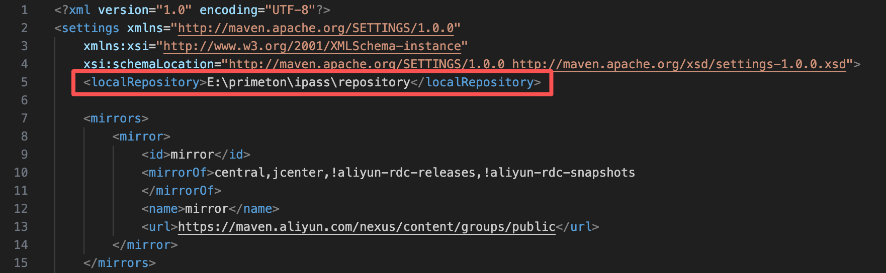 注意修改settings.xml里localRepository的配置,配置为Maven本地仓库的路径。