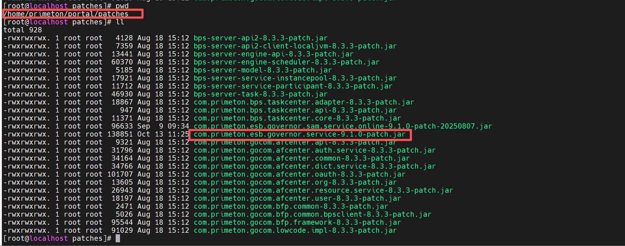 2、将生成的jar包放到portal/patches目录下,重启Portal即可完成部署。