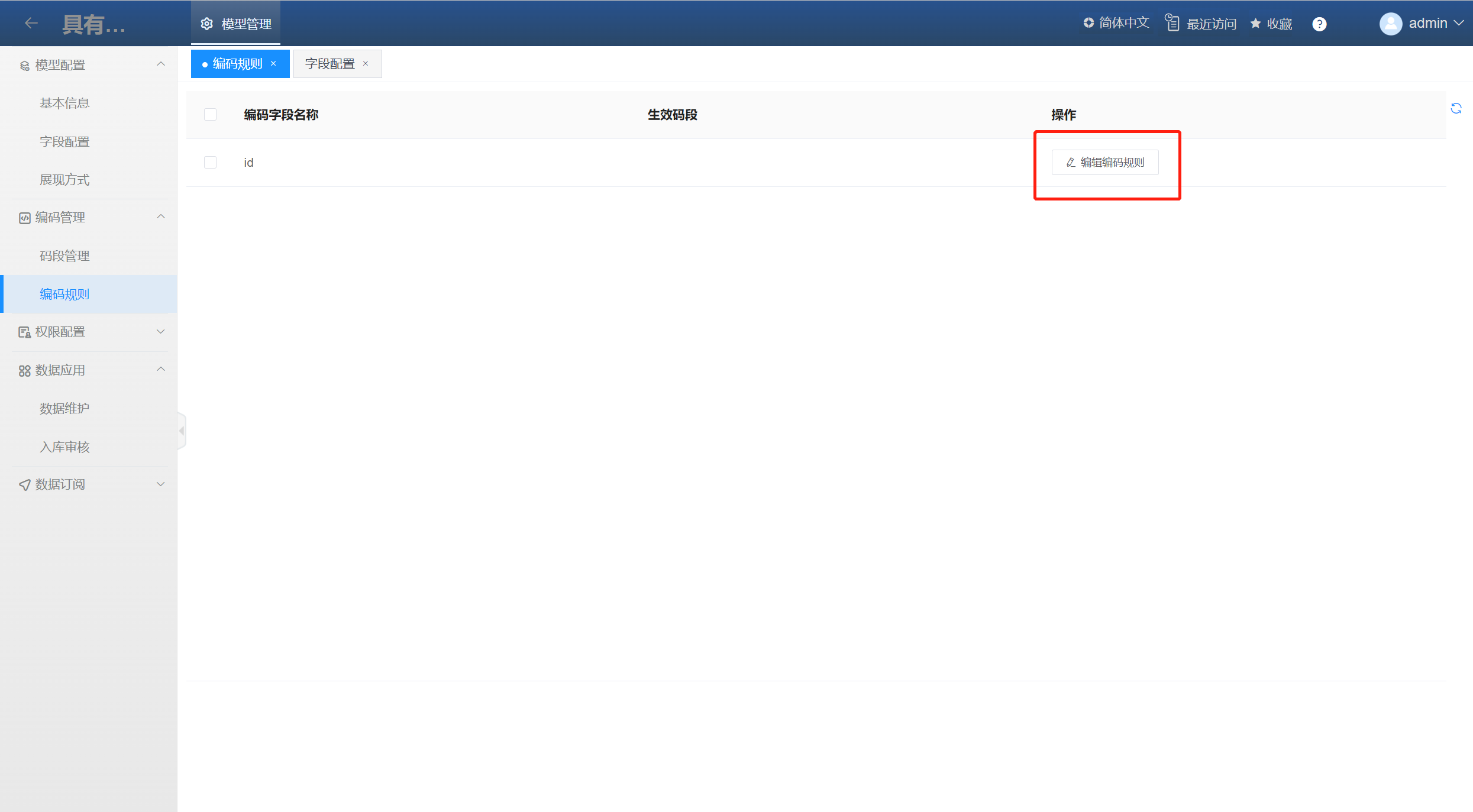 在字段配置页面中设定需要配置编码规则的字段。如下图,点击字段,勾选是否编码字段。